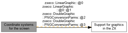 -PixelCoord/PixelDist/IntDist: pixel coordinates in the drawable part of the ZX screen. (0,0) are assumed to be in the top-left and grow downward from left to right, thus they are always positive. -CharCoord/CharDist/IntDist: char coordinates in the drawable part of the ZX screen. (0,0) are assumed to be in the top-left and grow downward from left to right, thus they are always positive. -BorderCoord/BorderDist/IntDist: pixel coordinates in the border of the ZX screen that are of the same pixel size as those on the drawable. (0,0) are at the (0,0) pixel coordinates of the drawable part of the screen, thus the top border section gets negative y-coordinates, the left border section gets negative x-coordinates, the right border section gets positive, beyond drawable pixel x-coordinates, and the bottom section gets positive, beyond drawable pixel y-coordinates.